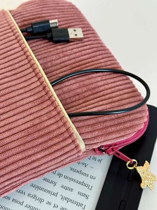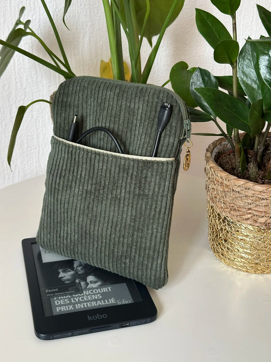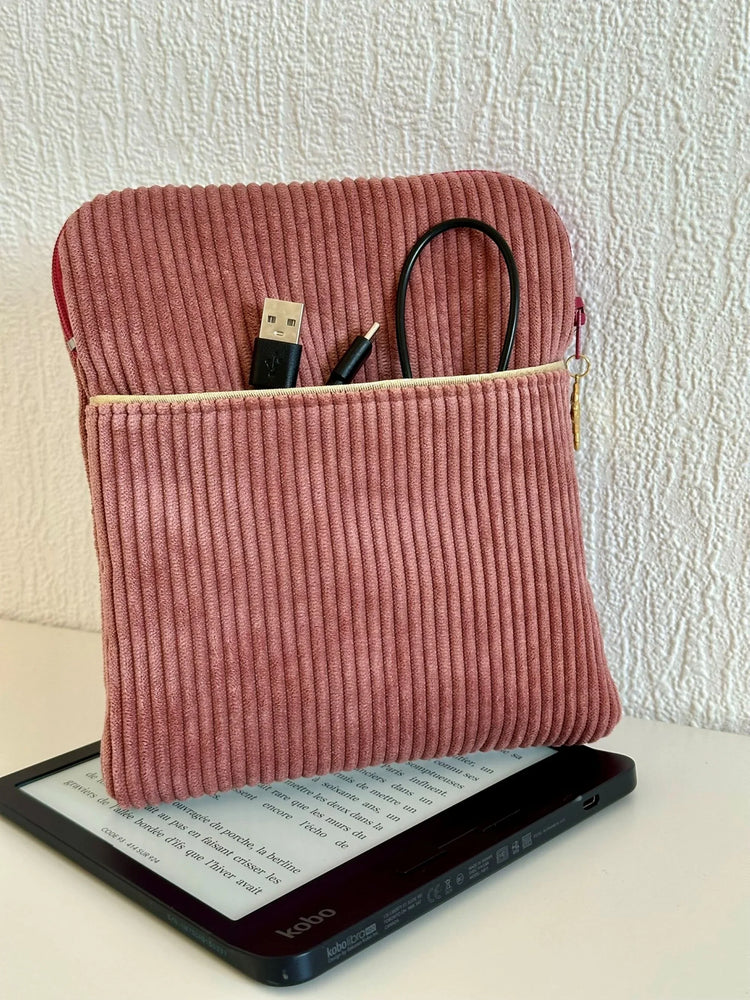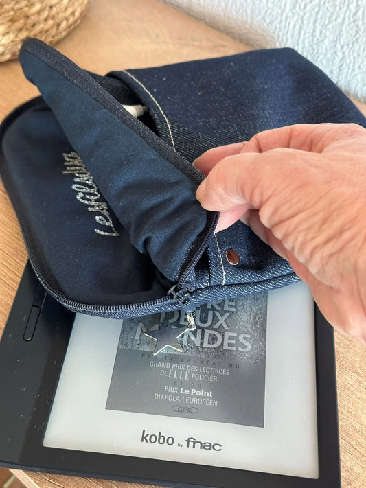 Adoptez la pochette à liseuse numérique Lesfilsdisa, votre accessoire de lecture idéal pour protéger et emporter partout votre ebook ou tablette. Disponible du 6 au 10 pouces et personnalisable, cet étui zippé et rembourré est équipé d'une poche avant pour votre câble de chargement ou stylet. Conçue sur mesure, cette pochette liseuse convient à tous les modèles de Kobo, Kindle, Vivlio, Bookeen … Lin et tissu japonais, denim ou velours tricoté, à vous de choisir !