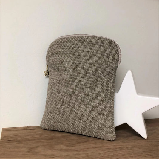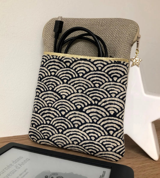 Pochette liseuse en lin et tissu japonais Seigaiha