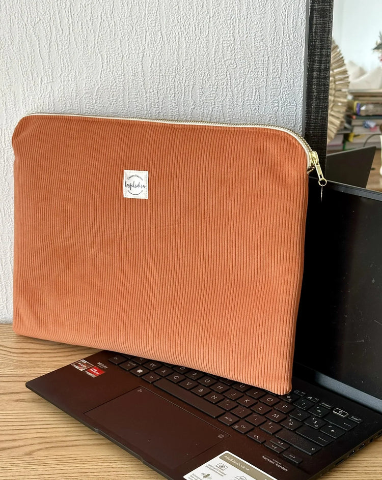 Pochette ordinateur en velours cotelé orange
