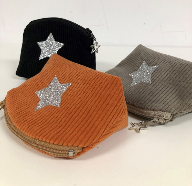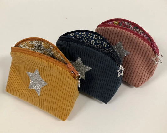 Petit porte-monnaie en velours cotelé à étoiles pailletées