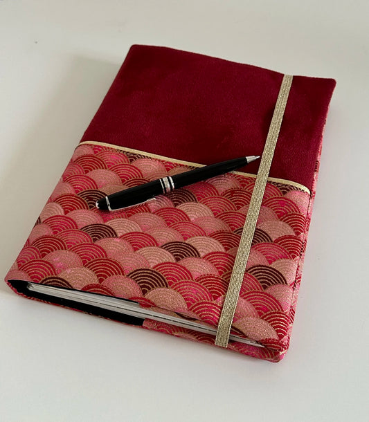 Le protège agenda en lin et tissu japonais Sakura rouge