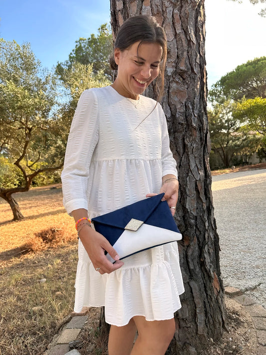 Sac pochette Isa bleu marine, blanc et doré