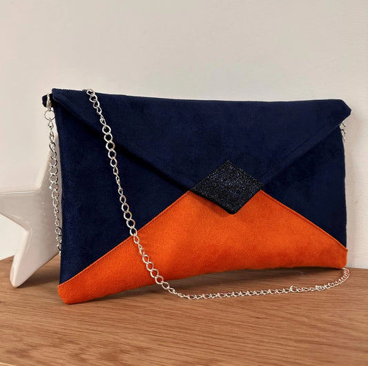 Sac pochette Isa bleu marine et orange à paillettes