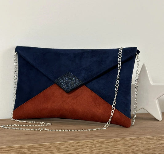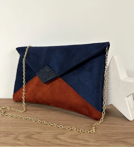 Sac pochette Isa bleu marine et terracotta à paillettes