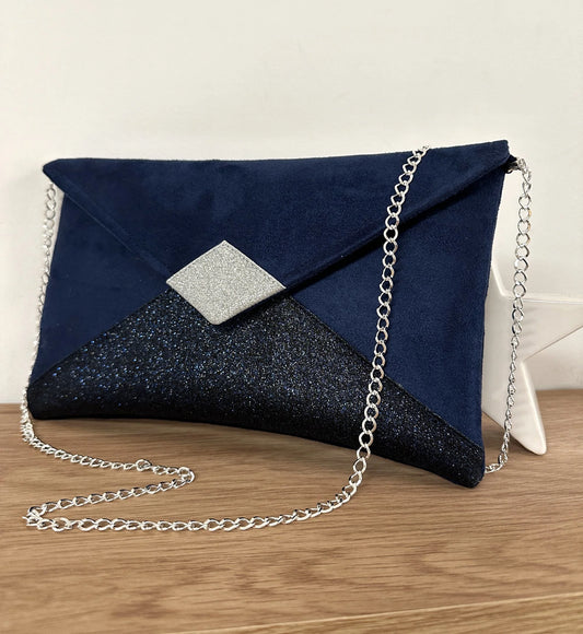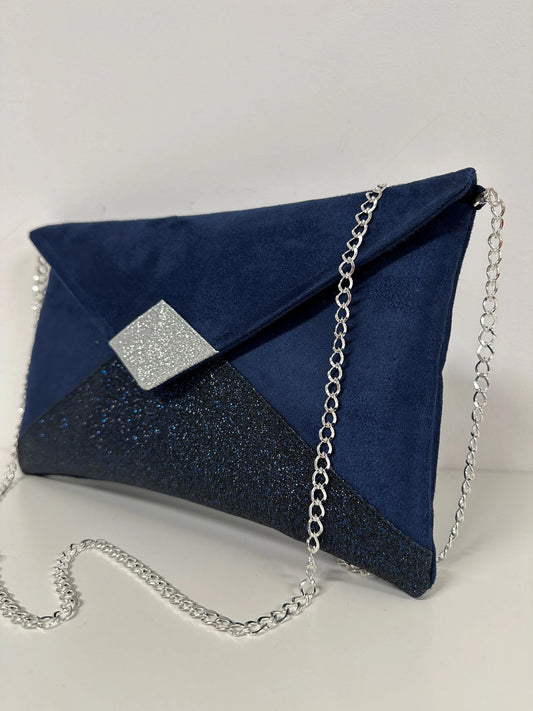 Sac pochette Isa à paillettes bleu marine et argentées