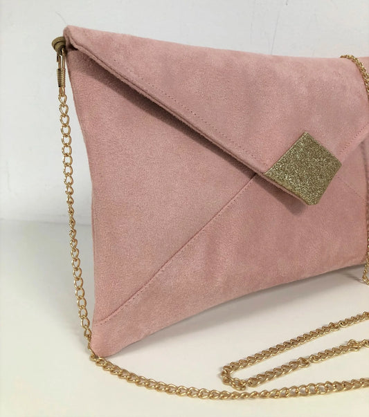 Sac pochette Isa rose poudré à paillettes dorées