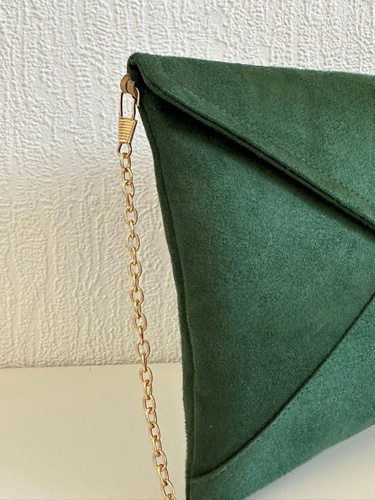 Sac pochette Isa vert sapin à paillettes dorées