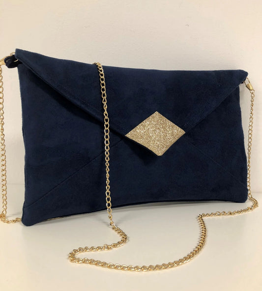 Sac pochette Isa bleu marine et doré à paillettes