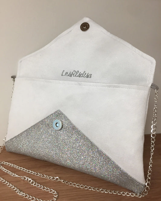 Sublimez votre tenue de mariage, de soirée , de cérémonie, avec le Sac Pochette Isa et sa touche de paillettes ! Le sac à main forme enveloppe élégant et tendance, avec ou sans chaînette amovible. Toutes nos pochettes de soirée sont fabriquées en France et personnalisables, pour vos témoins, demoiselles d'honneur et amies.