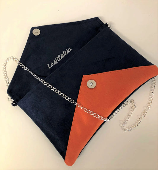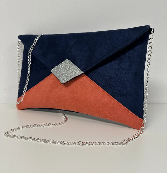 Sac pochette Isa bleu marine et orange à paillettes argentées