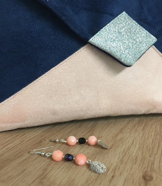 Sac pochette Isa bleu marine et corail à paillettes argentées