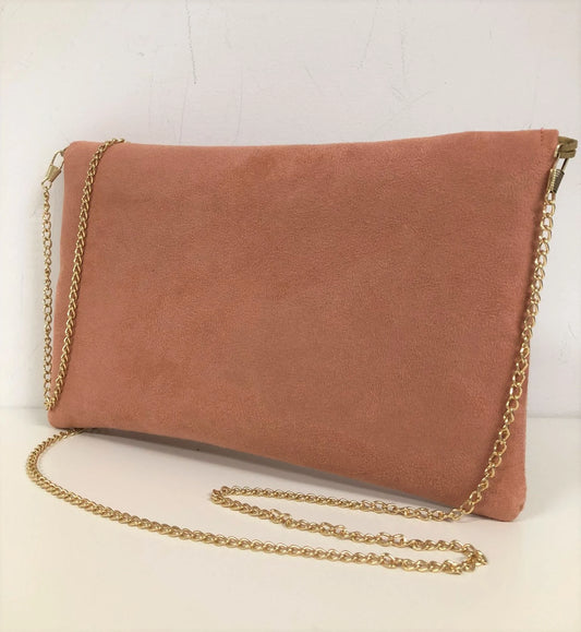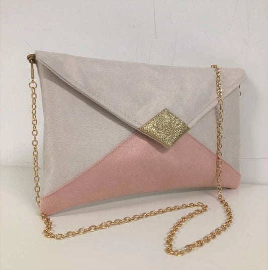 Sac pochette Isa écru et rose poudré à paillettes dorées