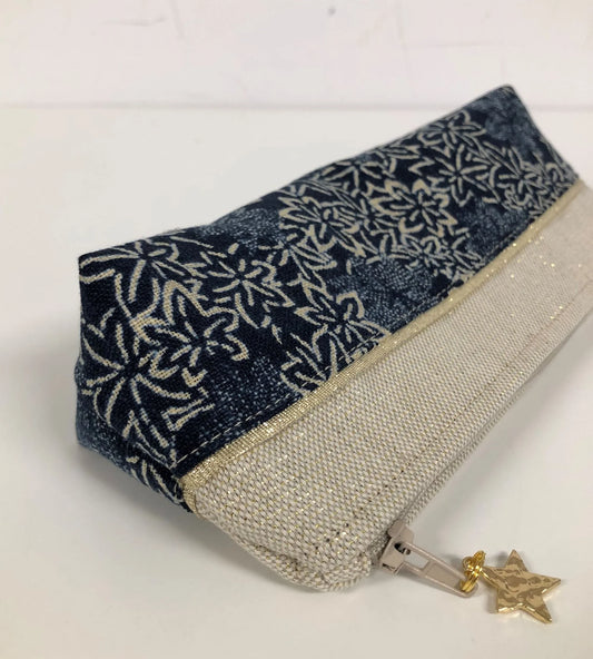 Midnight blue and gold traditional Japanese fabric mini pen case