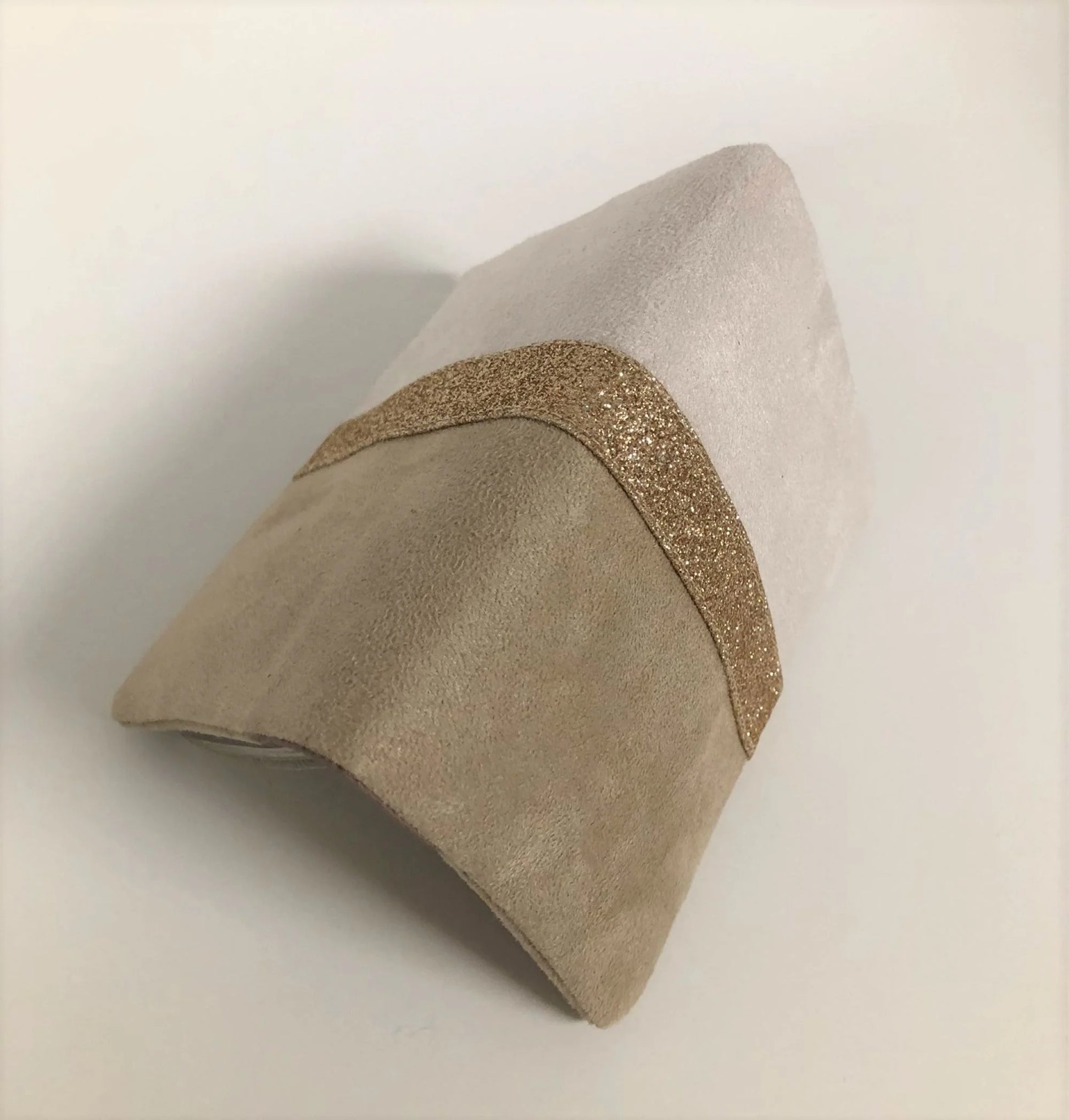 Enjoy French handcraft with this case ecru and beige with gold glitter, combining soft suede with a suede effect and its sparkling gold glitter band. With perfect finishes and a "satisfied or refunded" guarantee, you are acquiring the ideal accessory to accompany you on your trips and travels. (However, personalized items are not eligible for reimbursement, as they cannot be resold.)