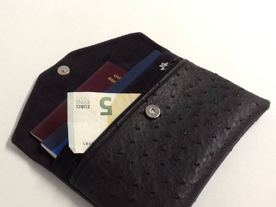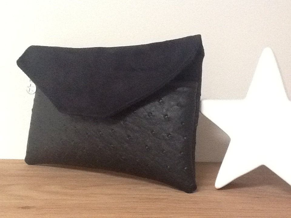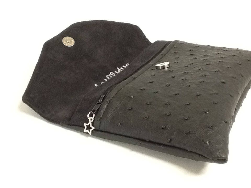 Much more than a simple clutch , this matte black ostrich-look bag companion is a real gem in the world of women's accessories . Both practical and chic, it combines the sophistication of ostrich leather with the elegance of matte black. Its optimal size allows it to easily slip into your bags , making it an ideal companion for any modern woman on the go.