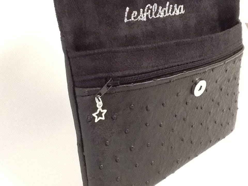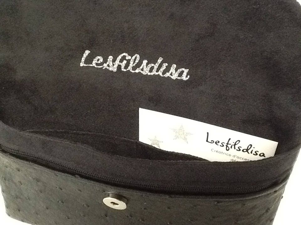 Each bag companion is designed with love and precision in our workshop in France. From the choice of materials to the making, every detail counts for us. Its exterior in black suede and matching matte ostrich faux leather gives this accessory an elegant and refined look.