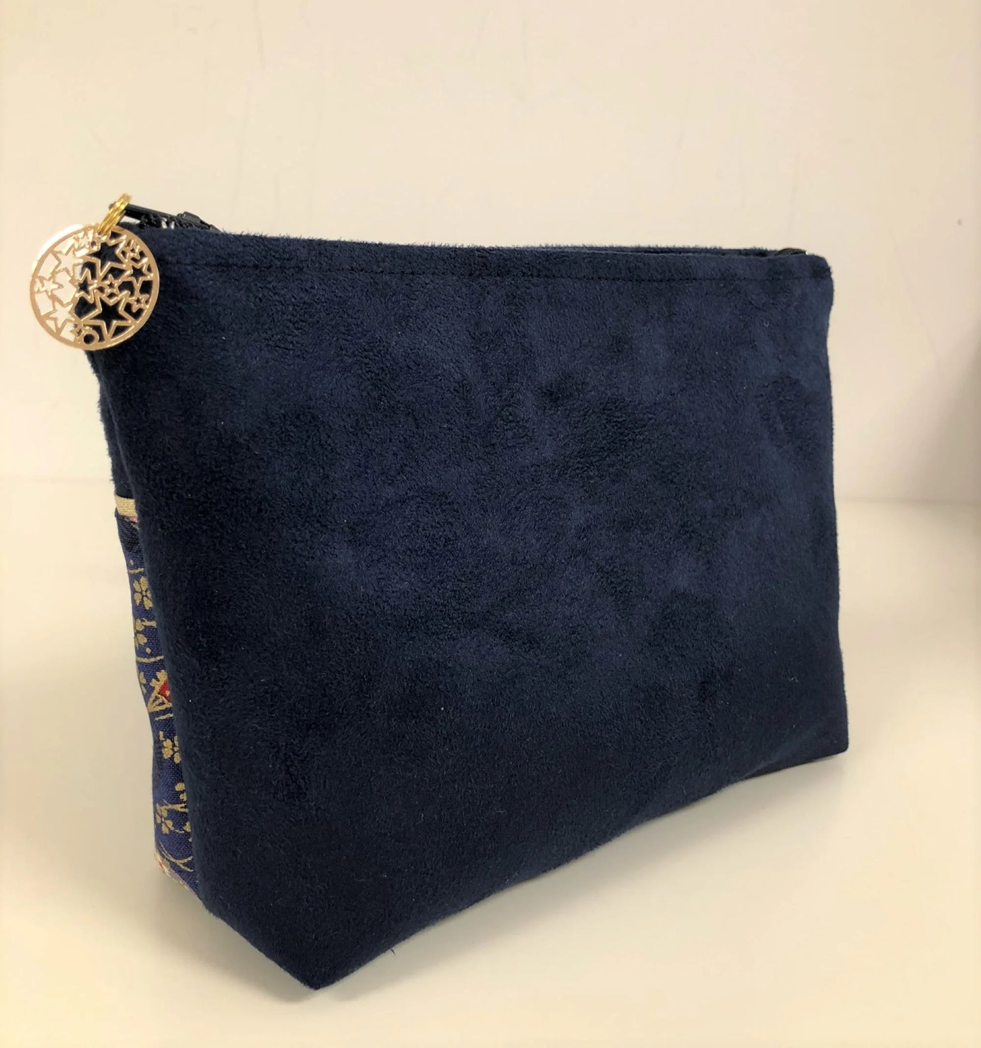 Pochette à maquillage bleu marine en tissu japonais Sakura éventails