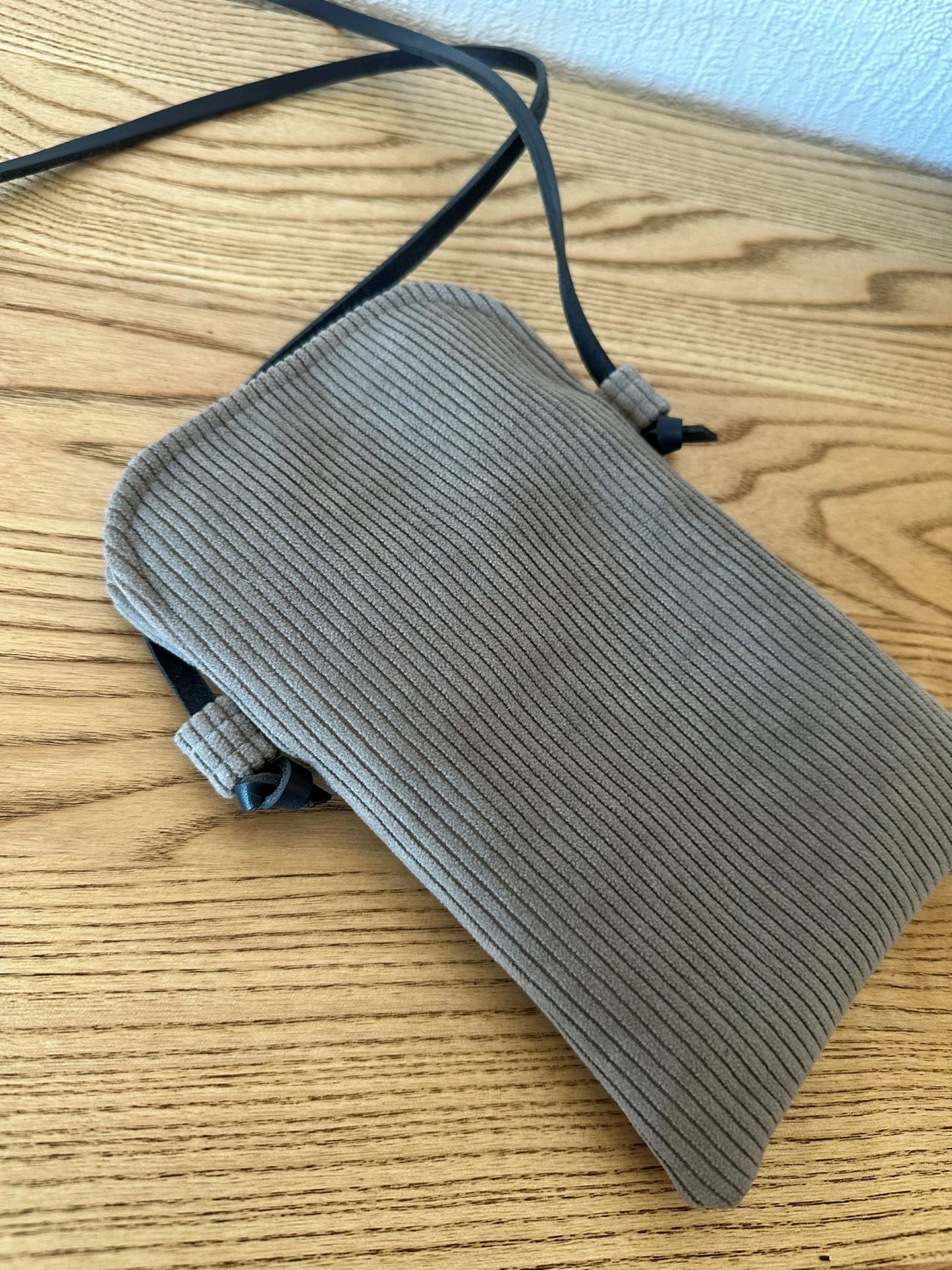 Pochette téléphone bandoulière en velours cotelé taupe et cuir